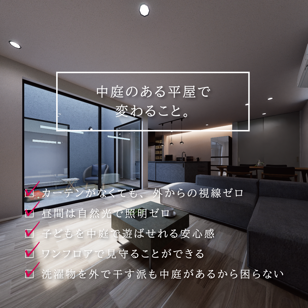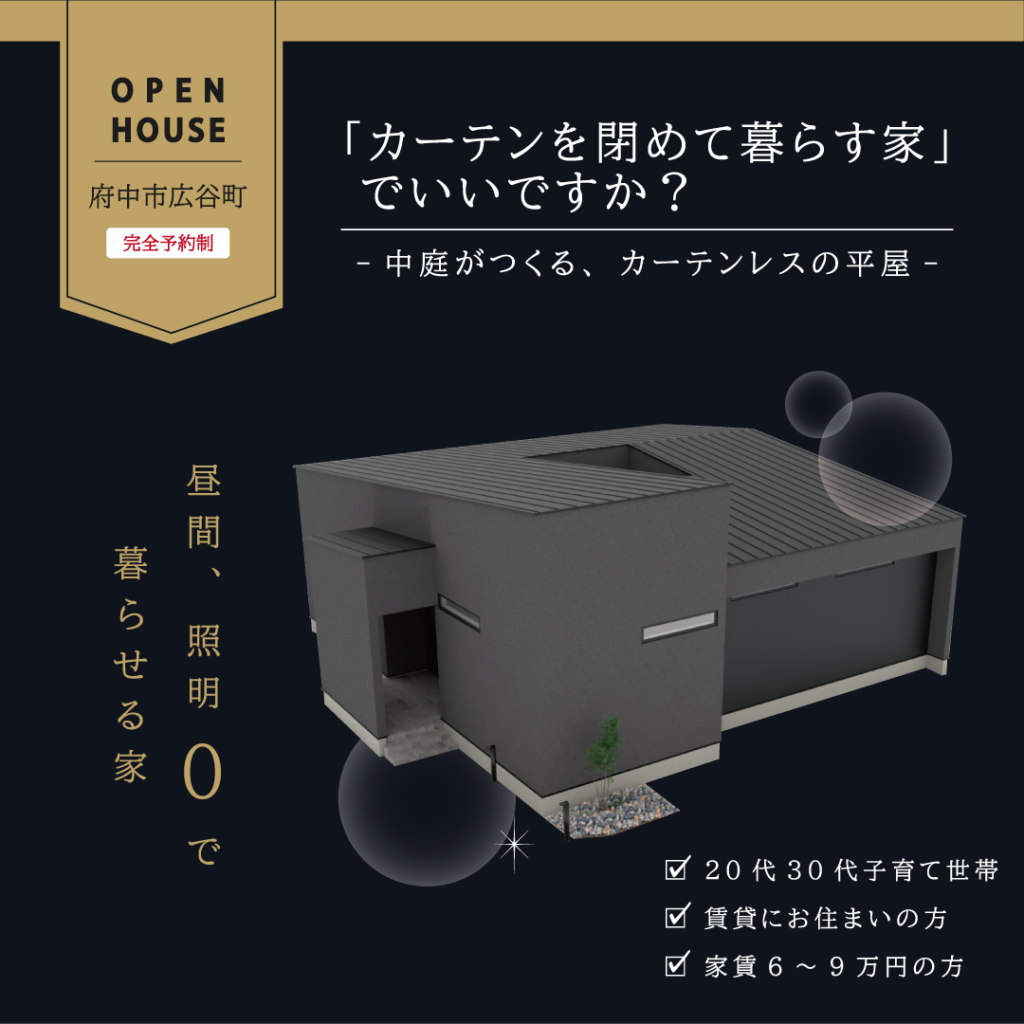 完成見学会【中庭がつくる、カーテンレスの平屋】3/30(月)~4/5(日)
