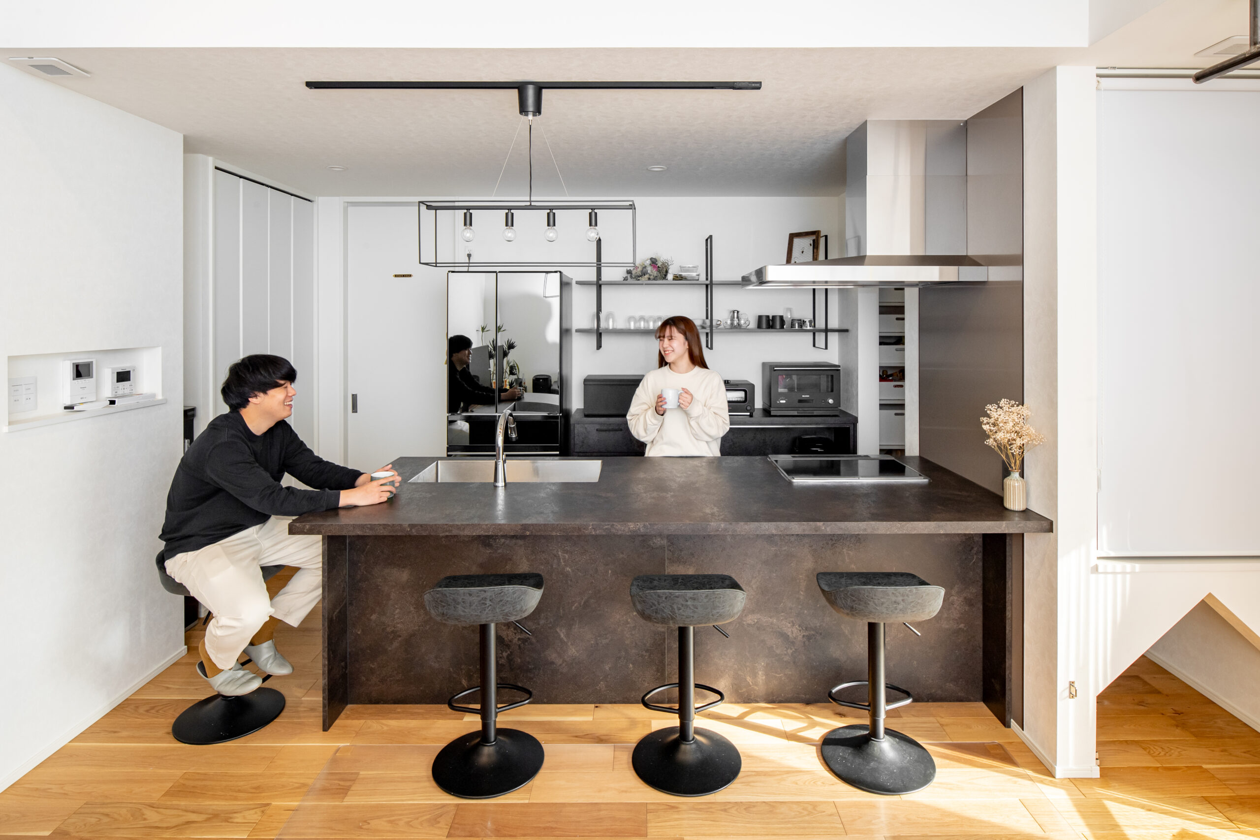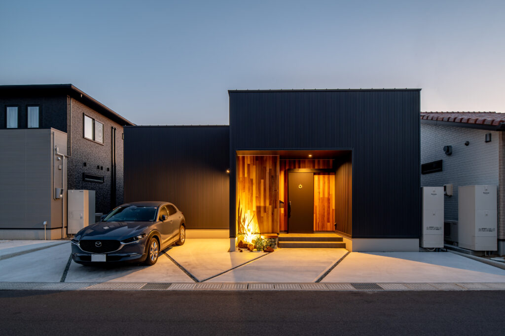 カッコいいだけではなく”暮らしやすさ”にもとことんこだわりました。 「ヌック」を採用することで特別な空間を演出でき、お家でCAFE気分を味わうことができるスペースを設けました。 その他にも、ランドリールームのカウンターをL字にしたり、限られた空間を最大限に有効活用できるロフトを設けたりと、オーナー様のアイデア満載の平屋となりました。