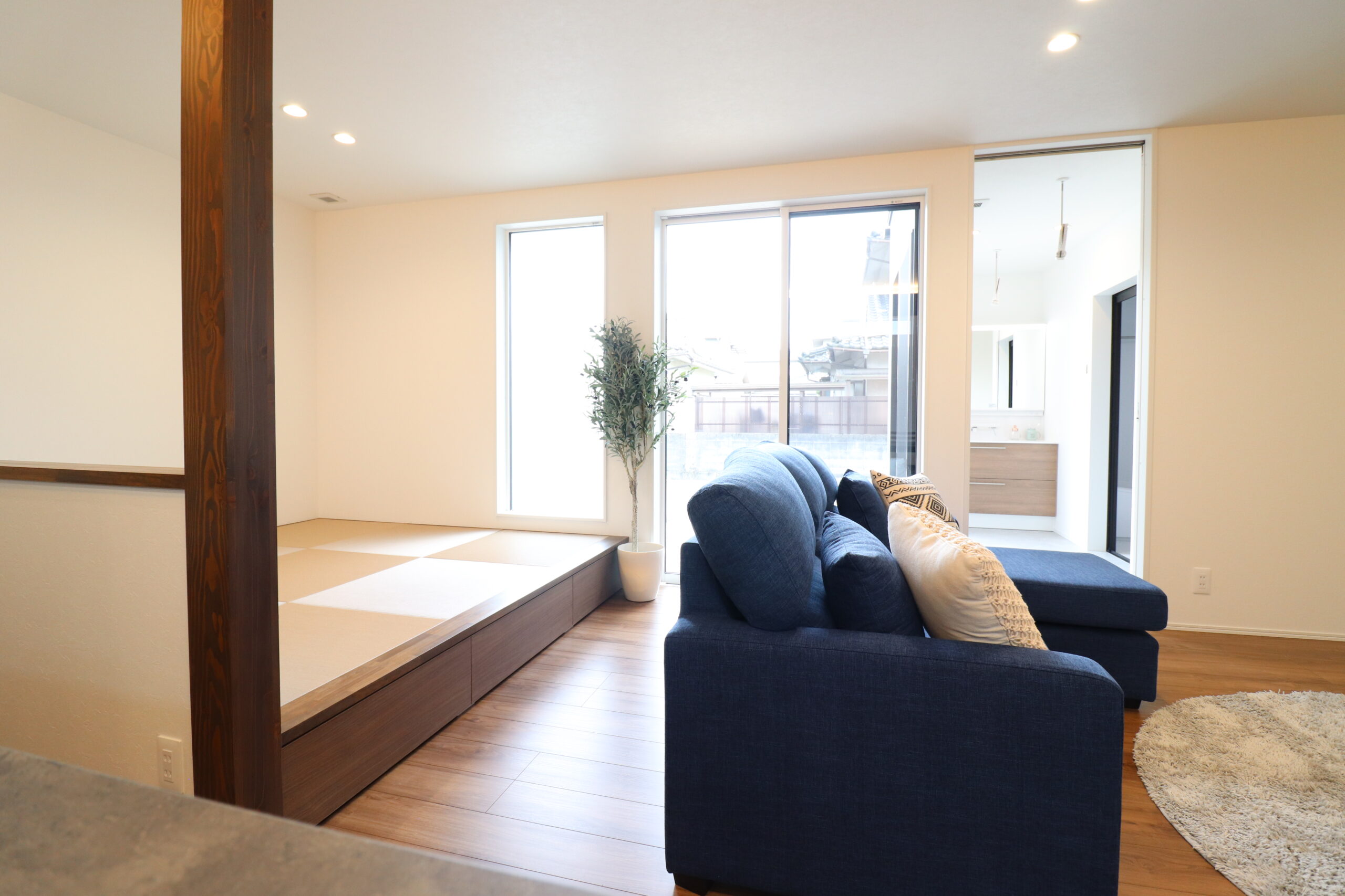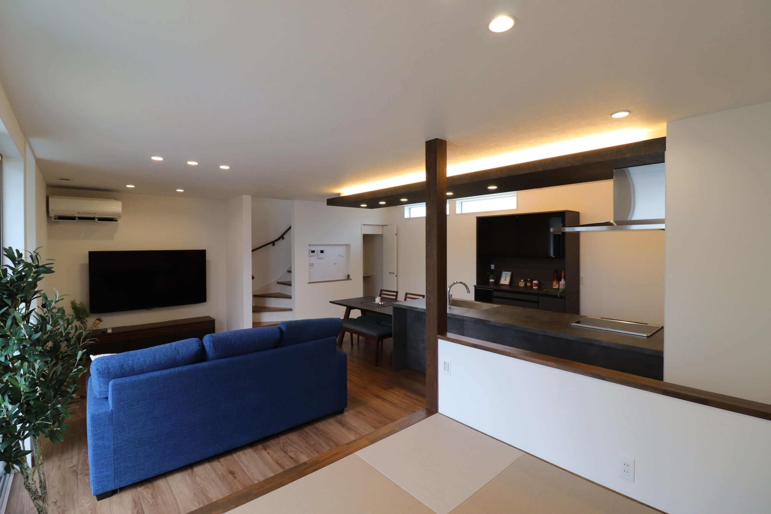 家族にとって住まいとは、寝るためだけ、食事をするためだけのものではありません。 「家族のつながりを感じられるお家にしたい」。 そんなご夫婦の理想を叶えたのは、リビングアクセスというリビングを経由した動線のある間取り。 家族間のコミュニケーションが減少してきている現代の中で、日々の中にある小さな“幸せ”を積み上げていけるお家になりました。