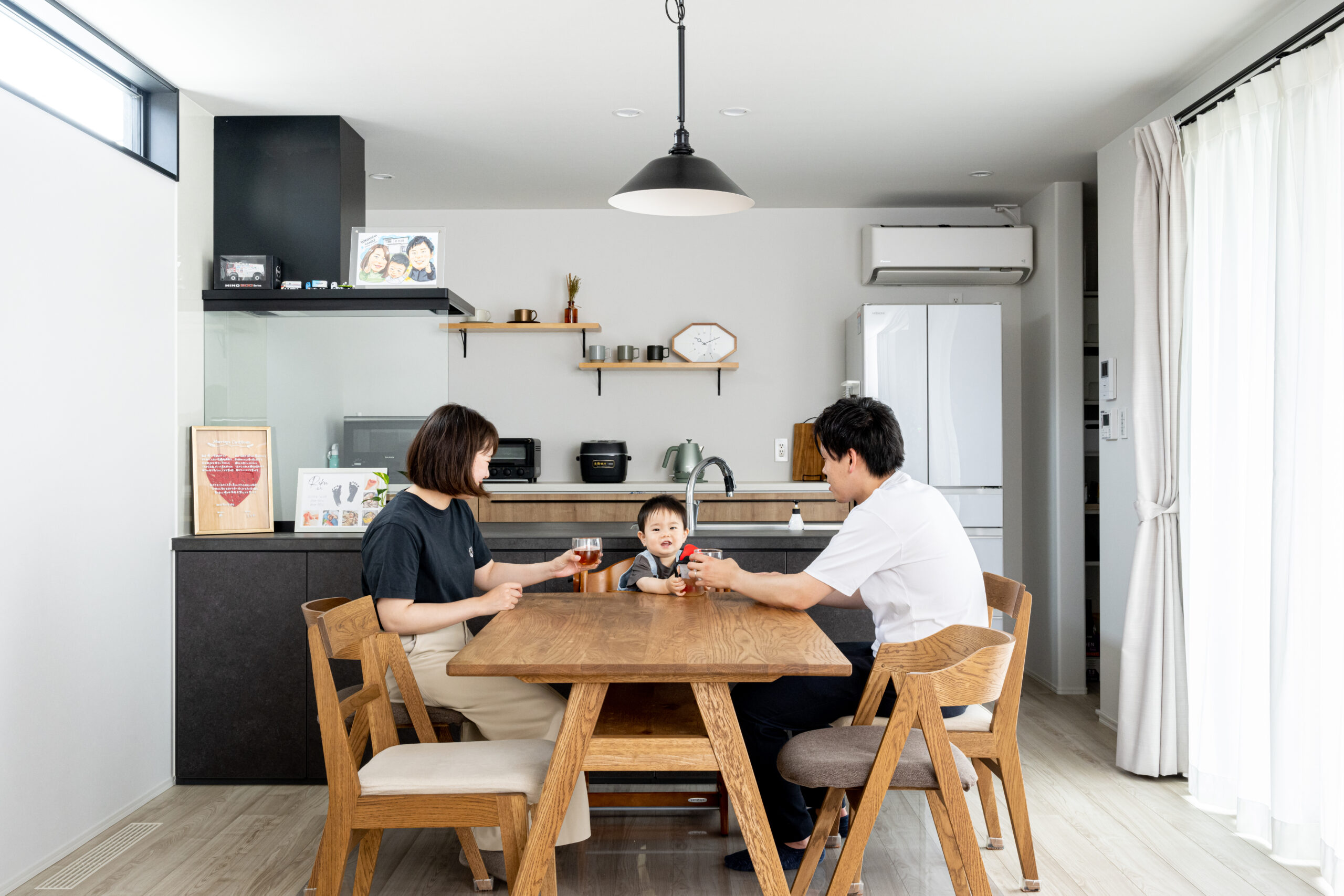 さらには、木の色との相性が抜群なのでやわらかインテリアにもぴったりでママだけではなく、家族みんなが過ごしやすい優しいお家となりました。