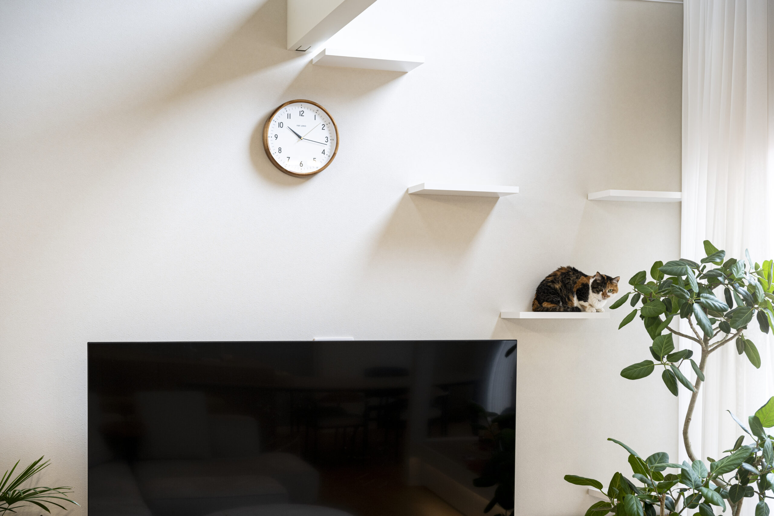 リビングには、キャットウォークを設け、愛猫が自由に動けまわれる工夫を施しました。