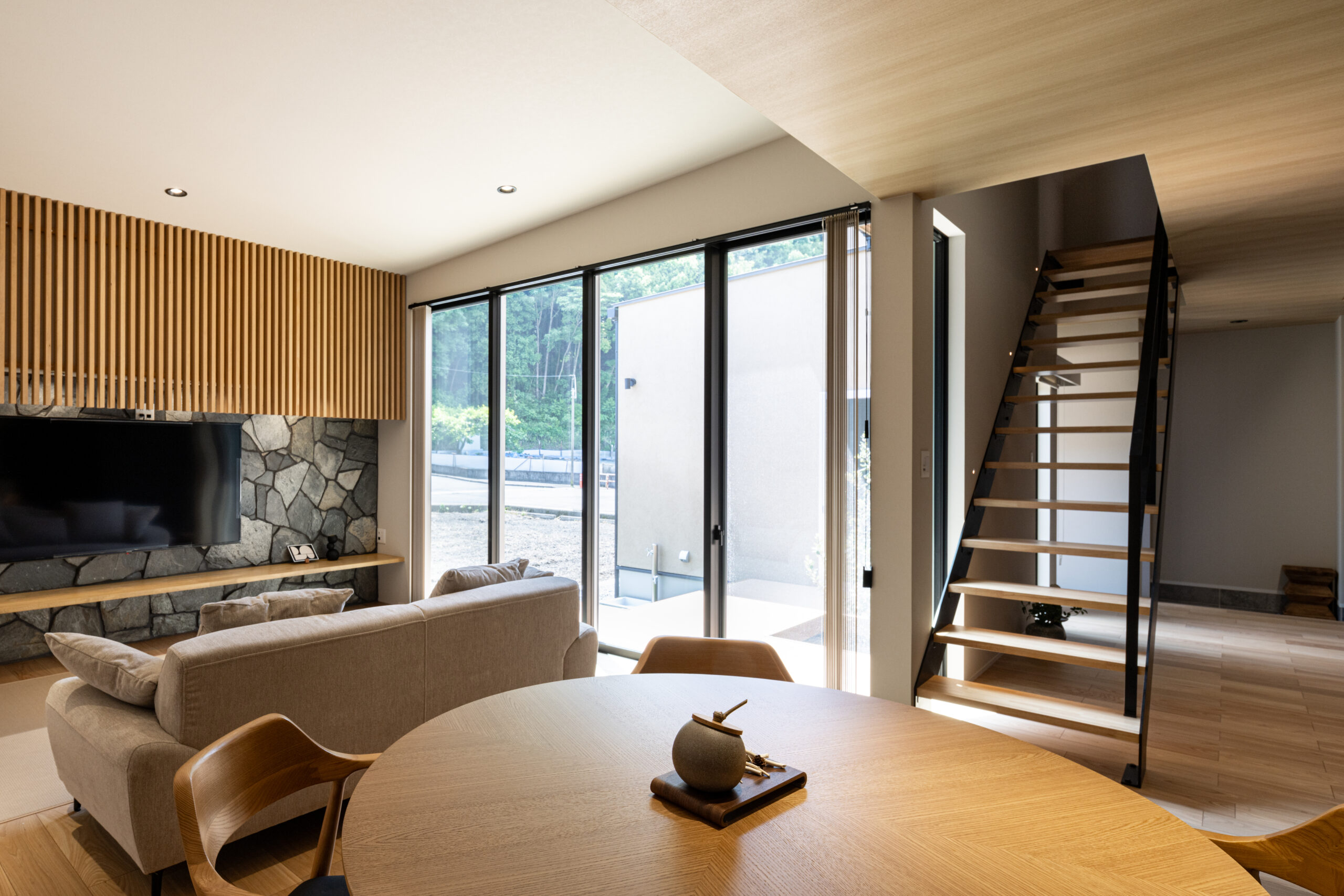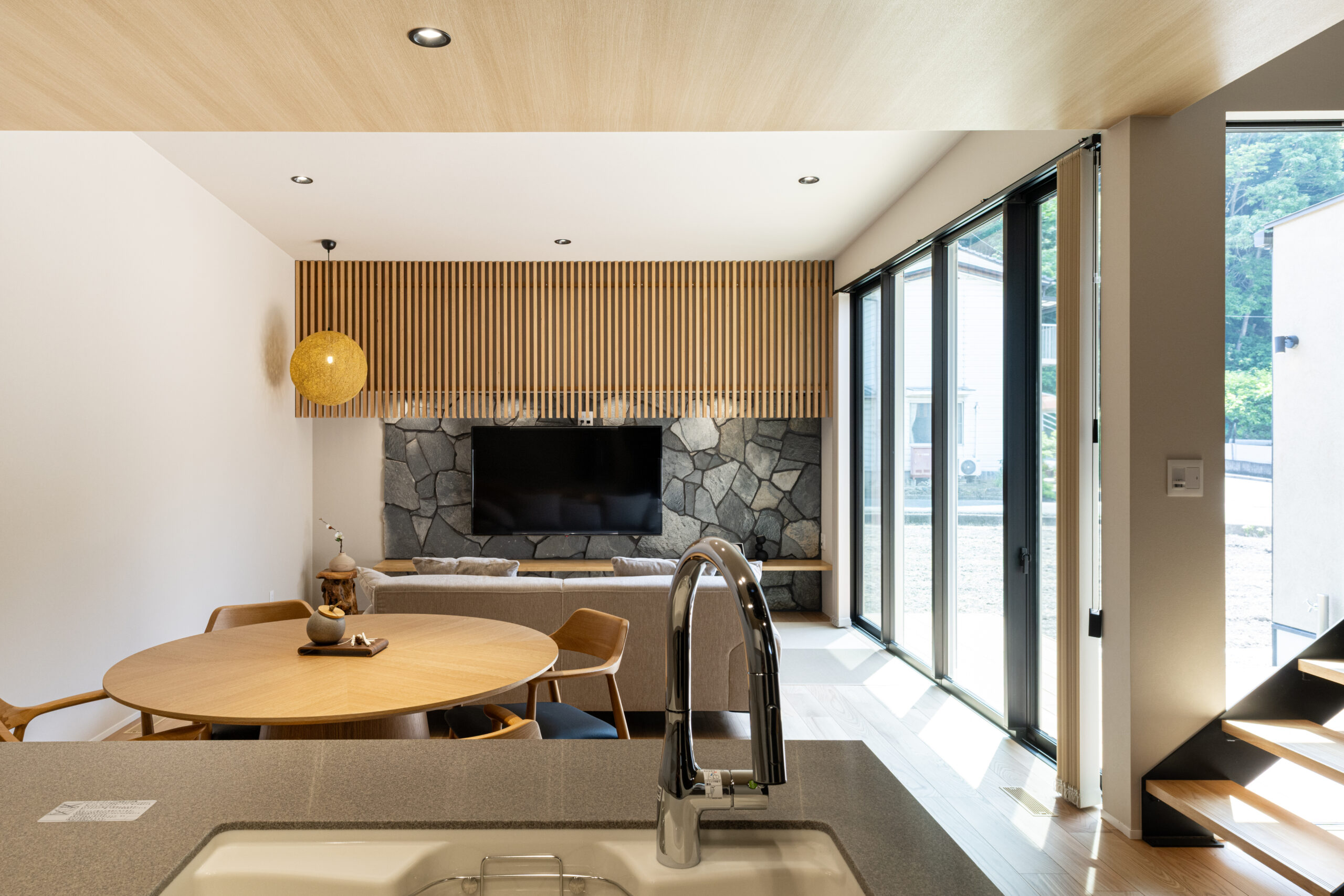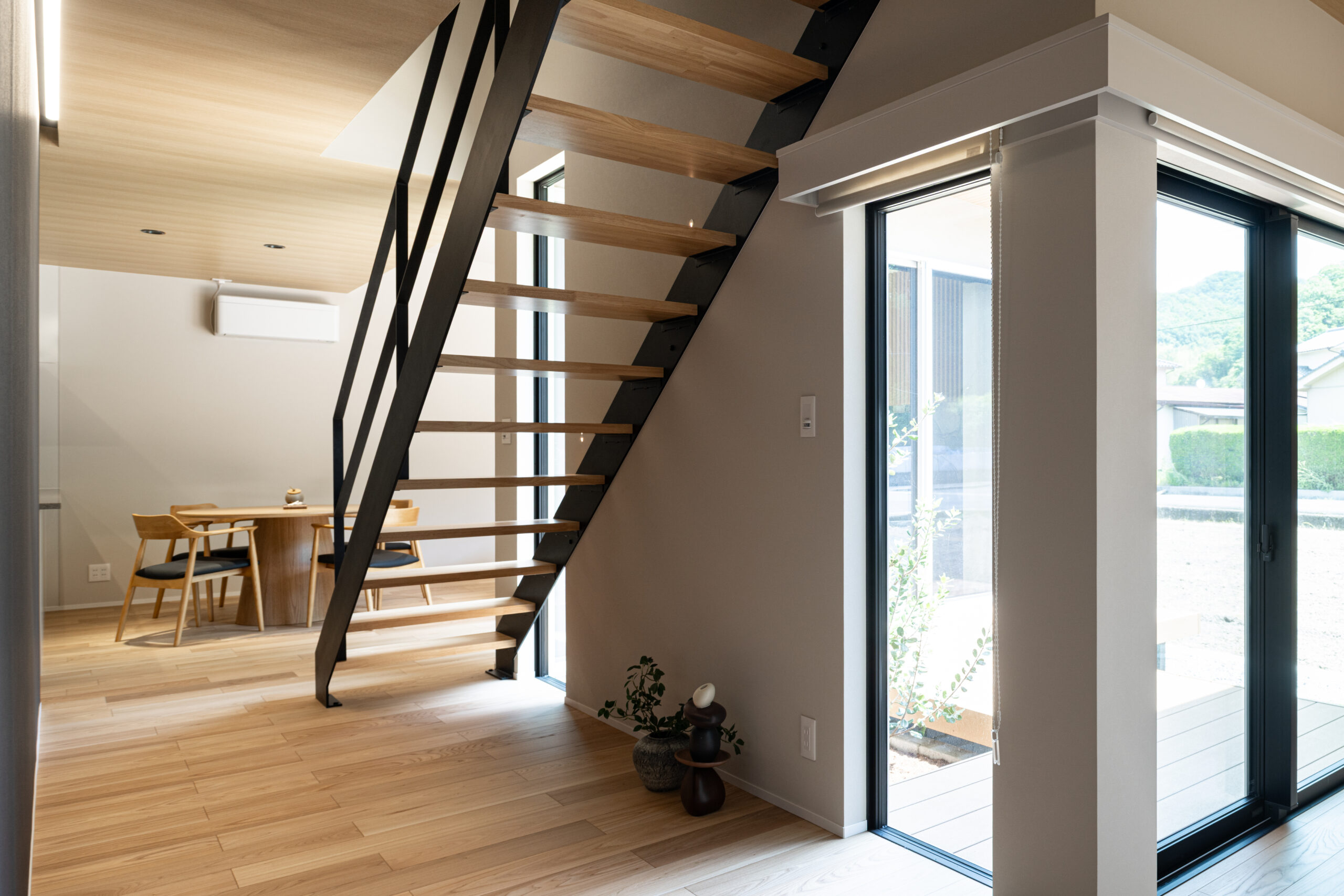 半平屋ならではの暮らしやすさと、和モダンの美しさをかけ合わせた“のびのび”と心がほどける住まいです。