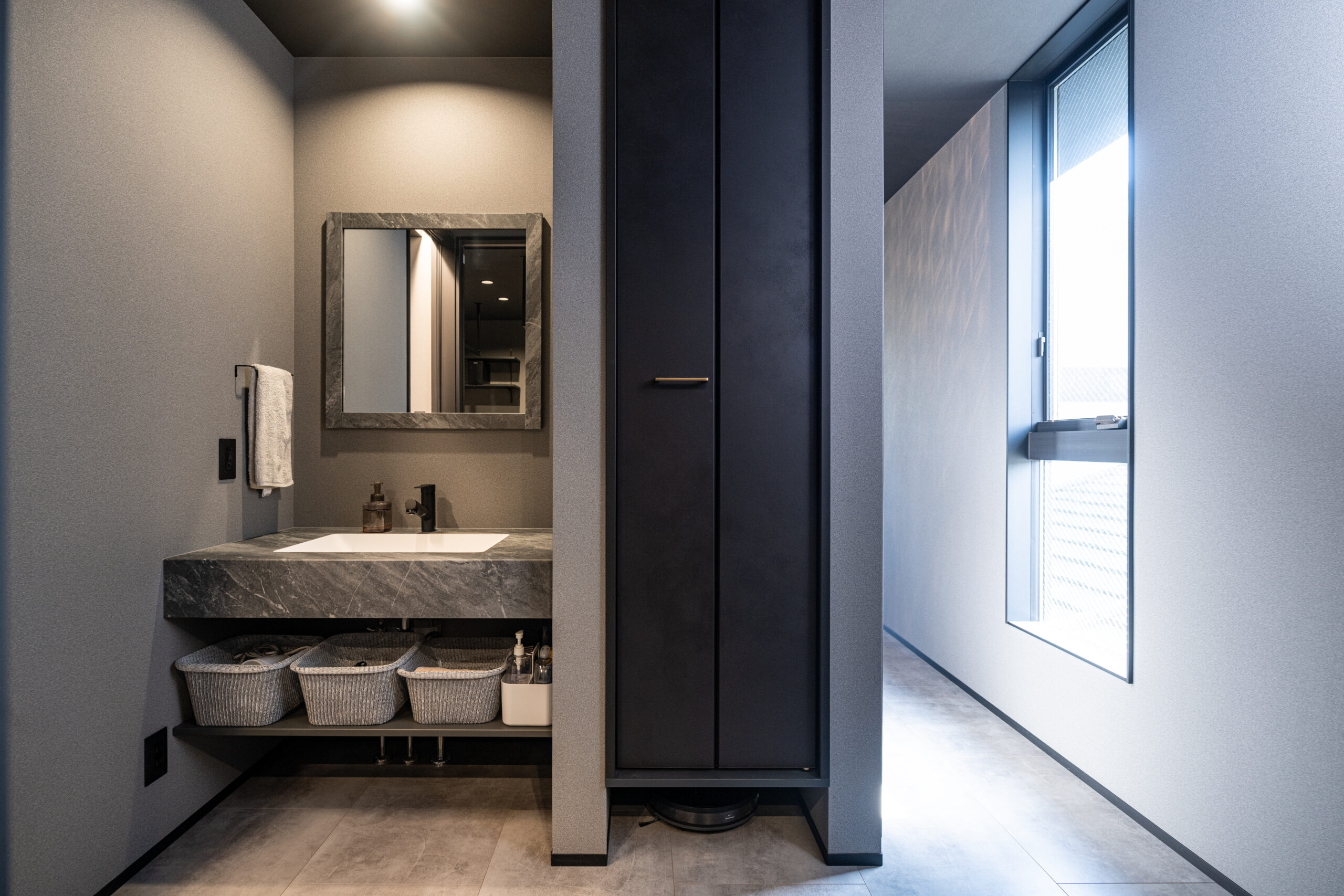 各所に設けた収納や回遊できる動線により、生活感を抑えながらも実用性の高い住まいを実現しました。